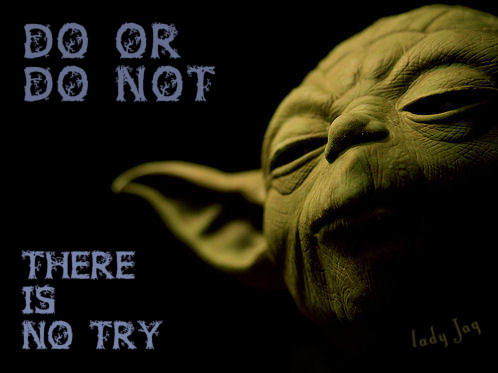 In the world that happens to be real, this is a terrible mentality that sets you up for nothing but abject failure. File that one under, "Mantras that are great in movies, but not real life". If you don't try things you don't know you will be awesome at, you're screwed. Thinking that trying isn't sufficient stunts improvement, and makes you force things to occur. (See what I did there? Force. Star Wars. Yeah.) But, seriously. You'll never get better at anything. You'll work hard, but not well. Or, you might even think you're working hard, because you're doing a lot of thinking about working, but you aren't actually doing anything. I've fallen into that trap. Now, I'm attempting to find more relaxation and simplicity in everything I do, and work well. Use my time wisely, and with a sense of calm and fun. A smile in my heart. My work in acting and Alexander Technique have made this much easier, and I'm finding how to work without muscling in yoga now as well. One thing I love about yoga is that I'm not quite so naturally good at it.